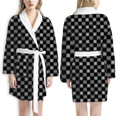 Chanel Black Grey Checkered Pattern Luxury Bathrobe