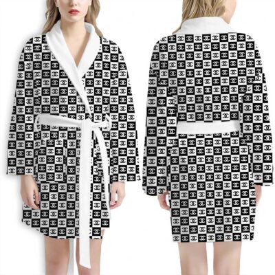 Chanel Black White Design Pattern Luxury Bathrobe