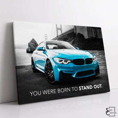 Motivational Canvas Art – “Stand Out” Blue Bmw M4 Car Quote Inspirational Framed Canvas Wall Art Poster Print