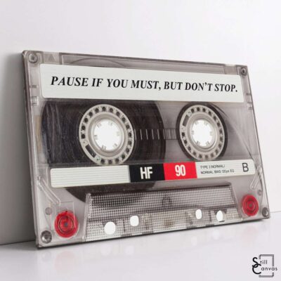 Retro Canvas Art – “Pause If You Must” Cassette Tape Motivational Inspirational Wall Art Framed Canvas Poster Print