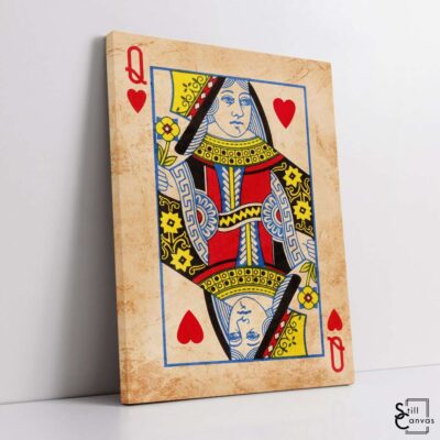 Creative Canvas Art – Queen Playing Cards Coffee Stained Texture Fashion Wall Art Framed Canvas Poster Print