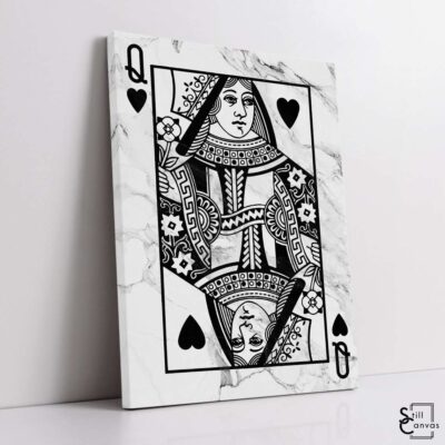 Creative Canvas Art – Queen Playing Cards White Marble Texture Fashion Wall Art Framed Canvas Poster Print