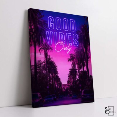 Creative Canvas Art – Good Vibes Only Los Angeles Hollywood Purple/Blue Wall Art Framed Canvas Poster Print