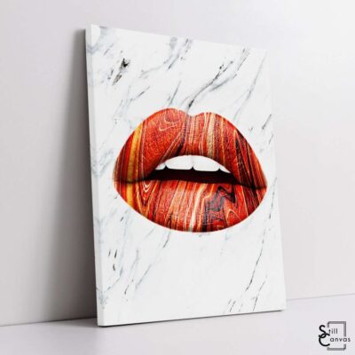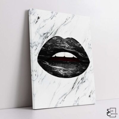 Creative Canvas Art – Lips Design Black Marble Teeth Kiss Fashion Style Wall Art Framed Canvas Poster Print
