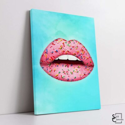 Creative Canvas Art – Lips Design Pink Sprinkles Teeth Kiss Fashion Style Wall Art Framed Canvas Poster Print