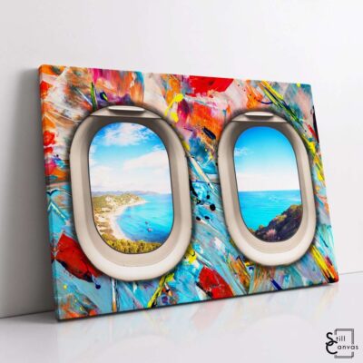 Creative Canvas Art – Window Seat Painting Splatter Travel World Just Go Wall Art Framed Canvas Poster Print