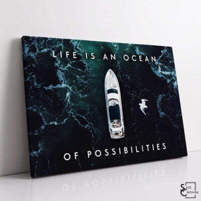 Motivational Canvas Art – “Life Is An Ocean Of Possibilities” Quote Inspirational Framed Canvas Wall Art Poster Print