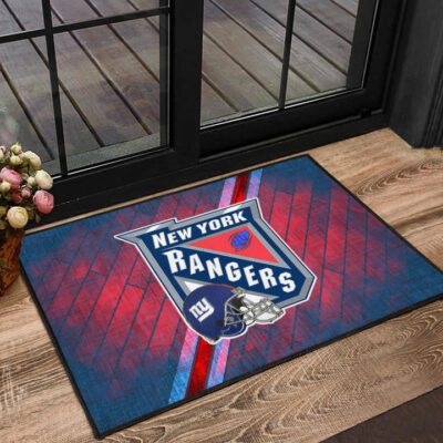 New York Giants American Football Team Door Mat NY Rangers Helmet Blue Red Background Door Mat Welcome Mat