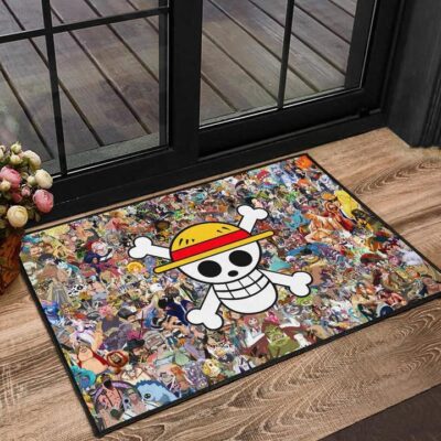 One Piece Anime Door Mat – Full Characters Background Big Skull Pirate Symbol Door Mat Welcome Mat