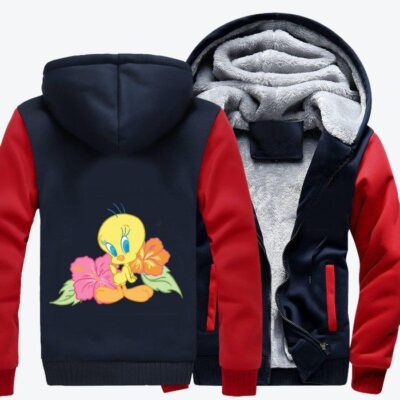Hibiscus And Tweety Looney Tunes Fleece Zip Hoodie Jacket