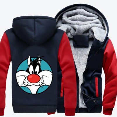 Bicolor Cat Sylvester Looney Tunes Fleece Zip Hoodie Jacket