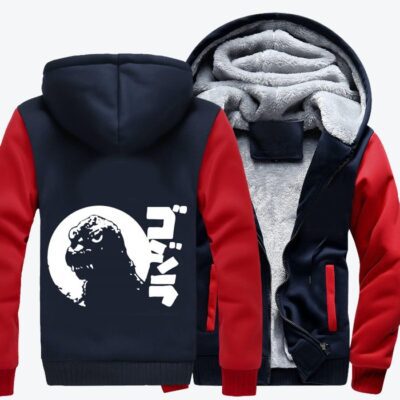 Grunge Motif Godzilla Fleece Zip Hoodie Jacket