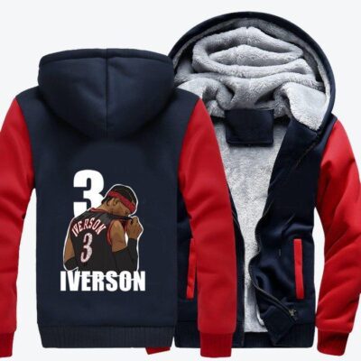 Number 3 Allen Iverson Basketball Fleece Zip Hoodie Jacket