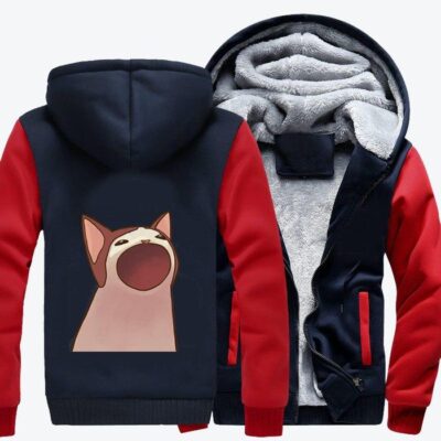 Pop Cat With Open Mouth Cat Fleece Zip Hoodie Jacket