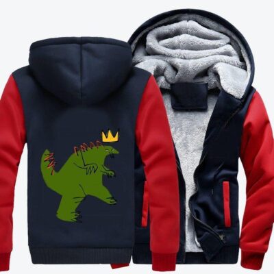 Angry Dinosaur Wearing A Basquiat Crown Jean-Michel Basquiat Fleece Zip Hoodie Jacket