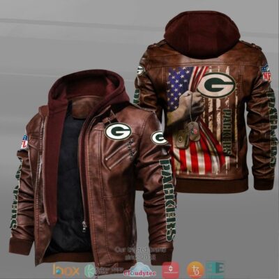 NFL Green Bay Packers hold American flag 2d Leather Jacket LJ1990