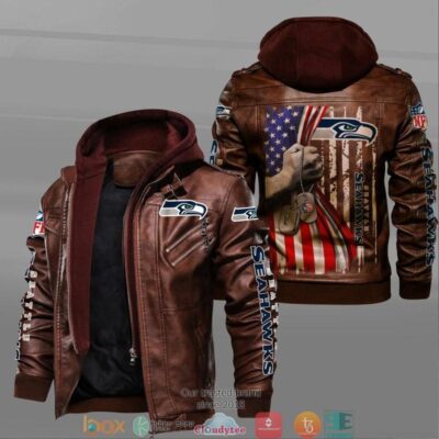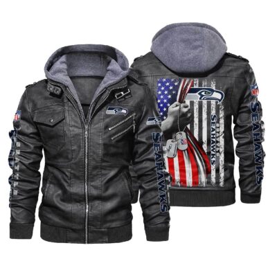 NFL Seattle Seahawks hold American flag 2d Leather Jacket LJ2039