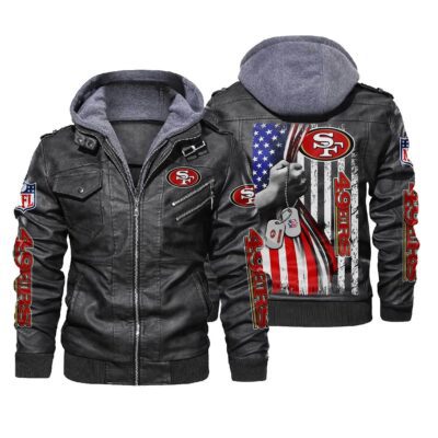 NFL San Francisco 49ers hold American flag 2d Leather Jacket LJ2035