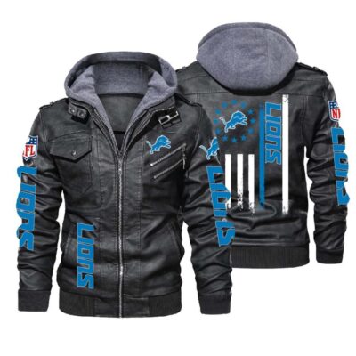 NFL Detroit Lions thin blue line flag 2d Leather Jacket LJ1988