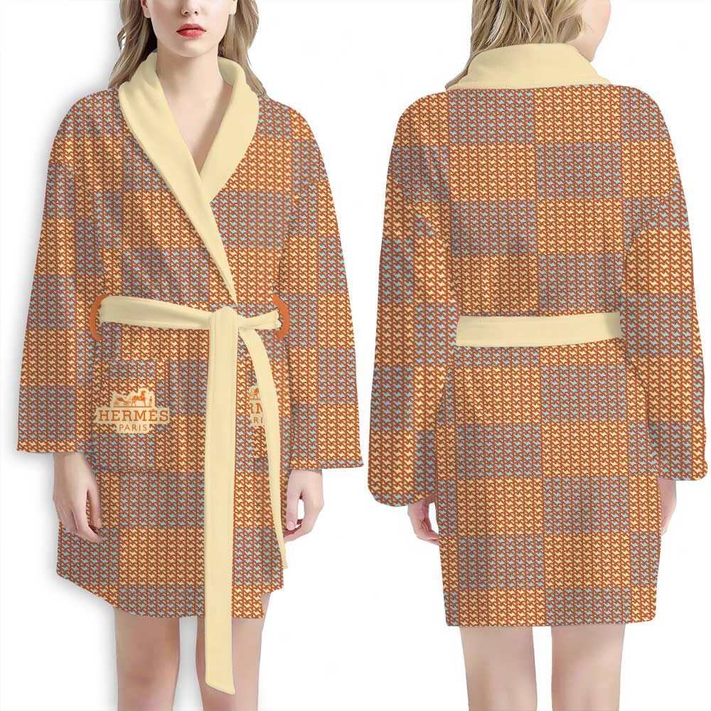 Hermes Orange Color Pattern Luxury Bathrobe