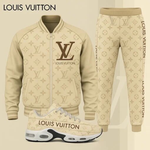 Louis Vuitton LV Beige Luxury Brand Premium Varsity Tracksuit Air Max Set