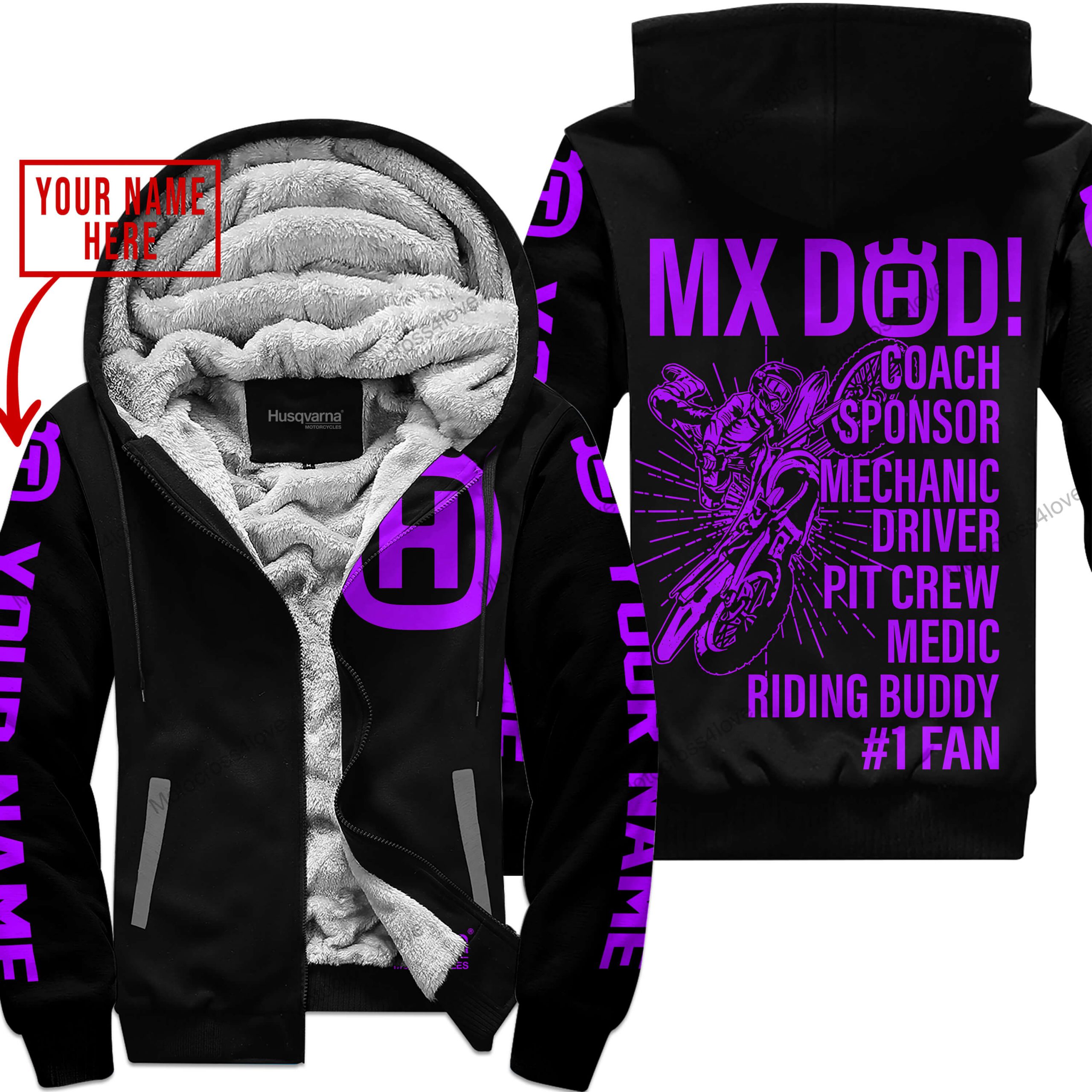 Mx Dad Personalised Gifts For Children & Adults Husqvarna Black Purple Fleece Zip Hoodie MFH1204