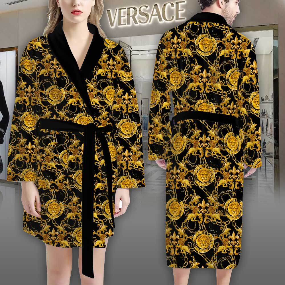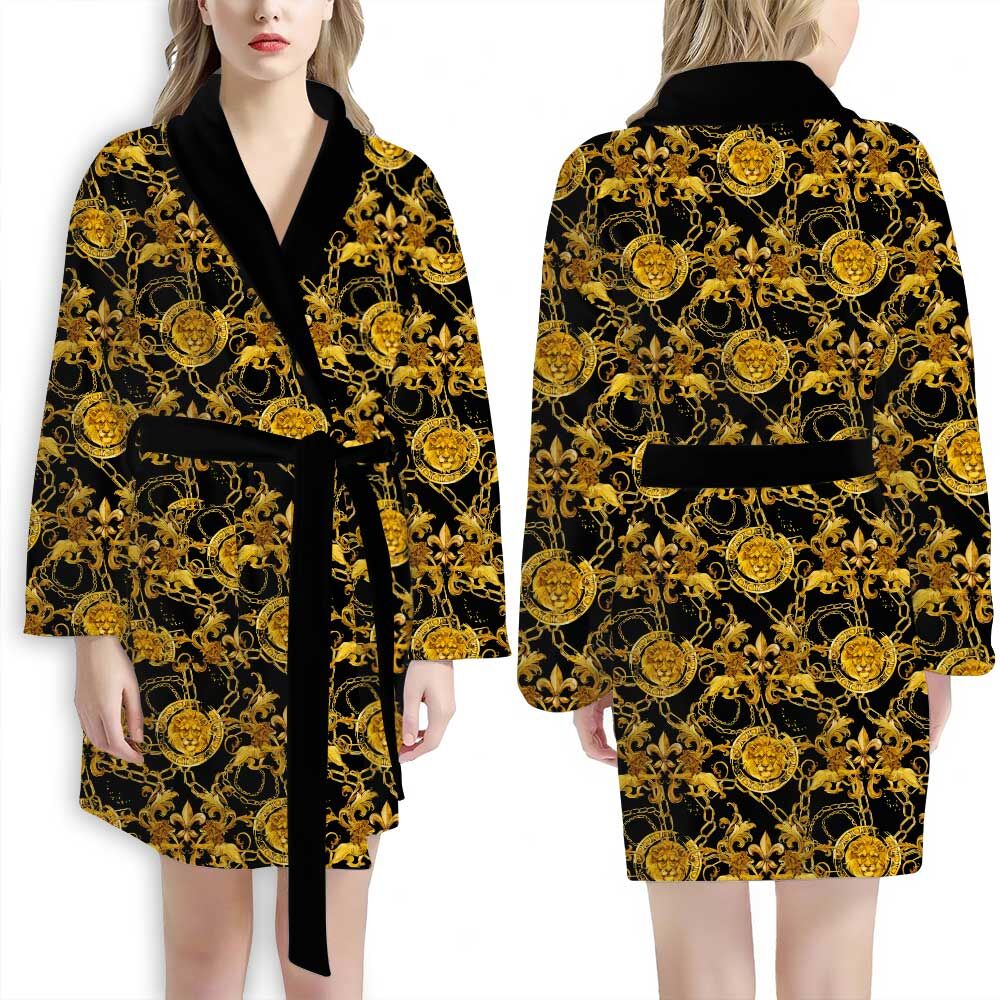 Versace Black Gold Lions Pattern Luxury Bathrobe