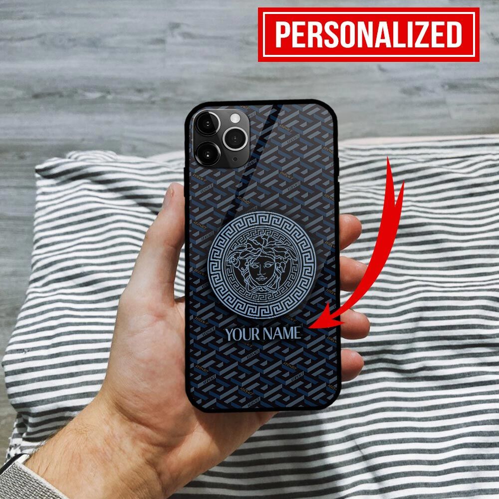 Versace Blue Manifesto Pattern Luxury Phone Case Iphone Samsung VERH05