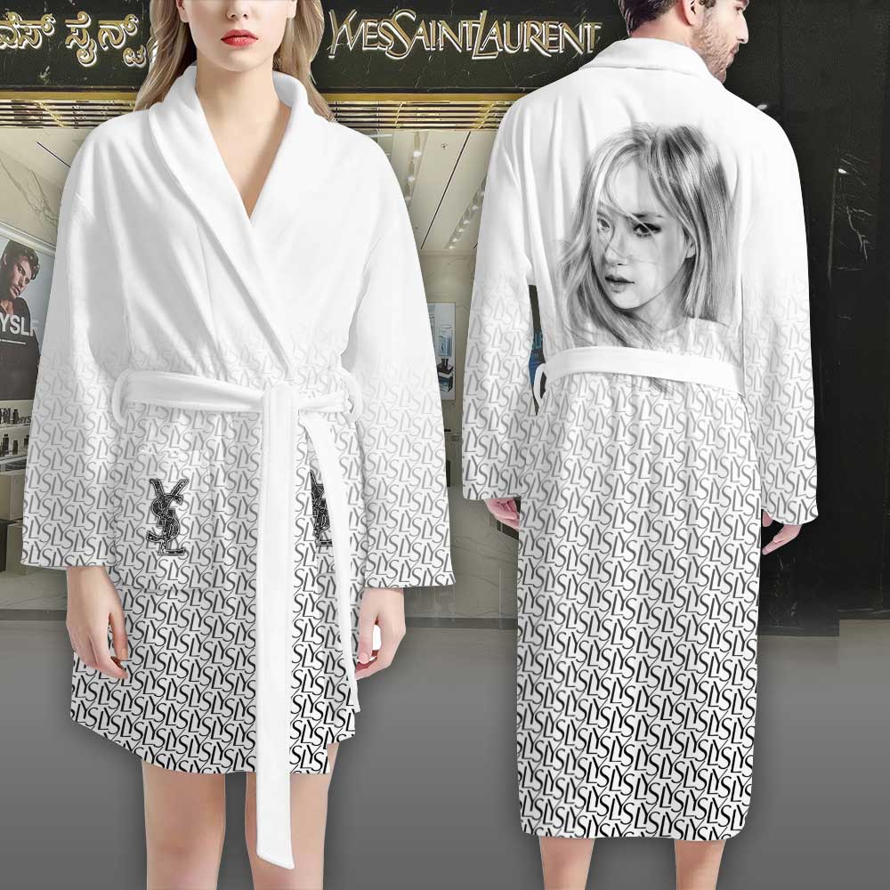 YSL Black White Rose Blackpink Pattern Luxury Bathrobe