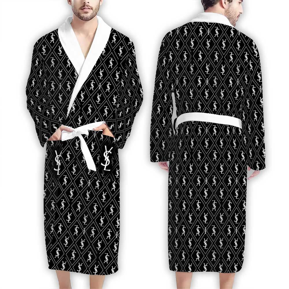 YSL White Logo Pattern Luxury Bathrobe