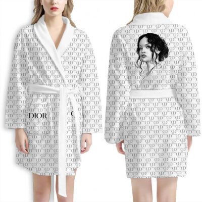 Dior White Pattern Robyn Rihanna Luxury Bathrobe