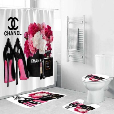 Chanel Shower Curtain Coco Fashion Perfume Rose Luxury Bathroom Set BRS284