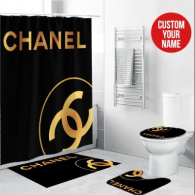Chanel Type Shower Curtain Waterproof Luxury Bathroom Mat Set Luxury Brand Shower Curtain Luxury Curtains – Bath Mat Set / Medium BRS802