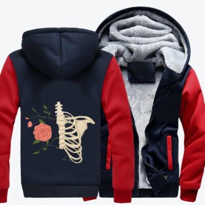 Roses Bloom On Bones Flower Fleece Zip Hoodie Jacket
