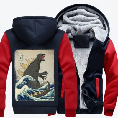 The Great Godzilla Off Kanagawa Ukiyo-e Fleece Zip Hoodie Jacket