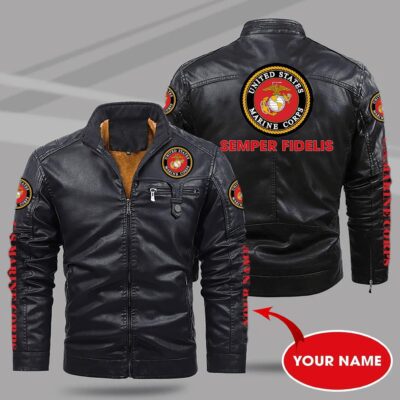 United States Marine Corps Semper Fidelis Custom Name Fleece Leather Jacket CFLJ001