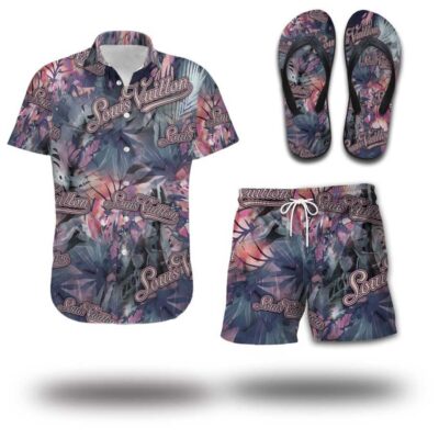 Louis Vuitton LV Flip Flops And Combo Hawaii Shirt Shorts Luxury Brand Summer Outfit HSF338