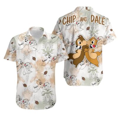Chip ‘n’ Dale Nuts Summer Tropical Print Disney Hawaiian Button Down Shirt Shorts Set Unisex Outfits