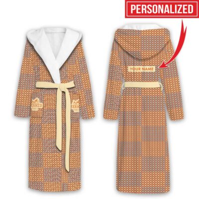 Hermes Orange Color Pattern Unisex Flannel Hooded Bathrobe