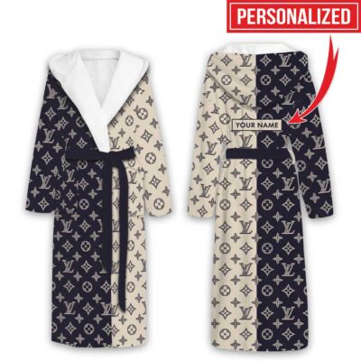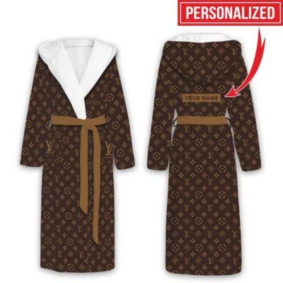 Louis Vuitton Brown Pattern Luxury Unisex Flannel Hooded Bathrobe