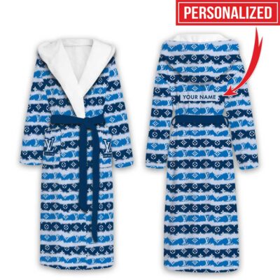 Louis Vuitton Blue Pattern Luxury Unisex Flannel Hooded Bathrobe