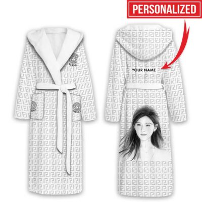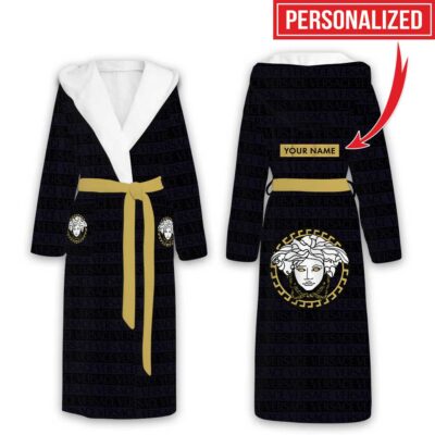 Versace Logo Pattern Luxury Unisex Flannel Hooded Bathrobe