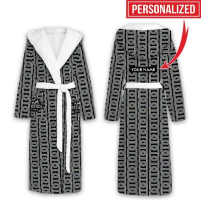 Hermes Silver Pattern Luxury Unisex Flannel Hooded Bathrobe