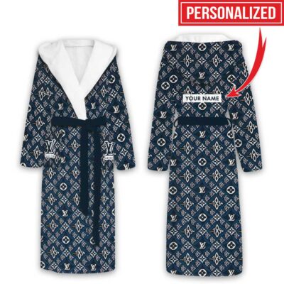 Louis Vuitton Pattern Luxury Unisex Flannel Hooded Bathrobe