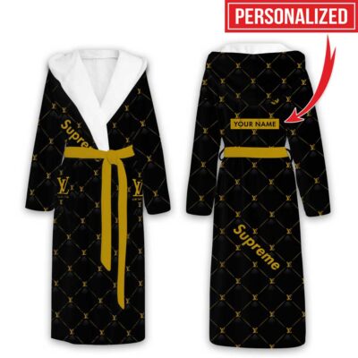 Louis Vuitton Black Supreme Pattern Luxury Unisex Flannel Hooded Bathrobe