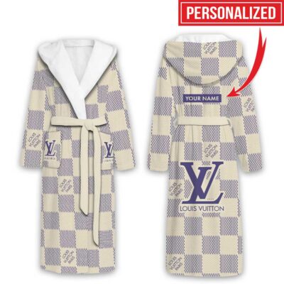 Louis Vuitton 1854 Pattern Luxury Unisex Flannel Hooded Bathrobe