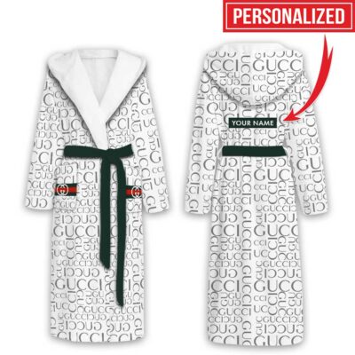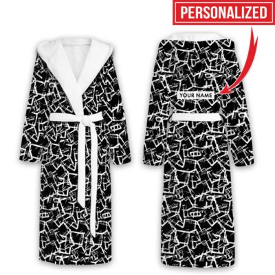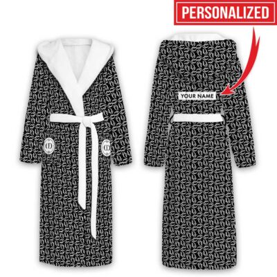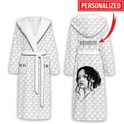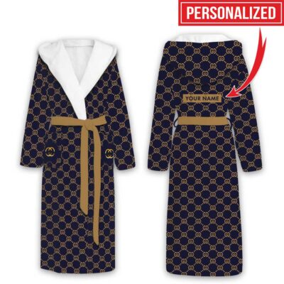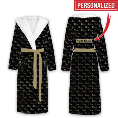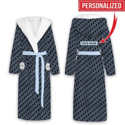 Dior Dark Blue Pattern Luxury Unisex Flannel Hooded Bathrobe