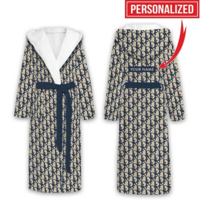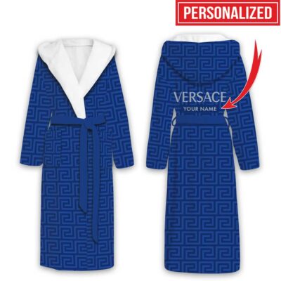 Versace Monogram Greek Key Deep Royal Blue Luxury Hooded Bathrobe Collection For Winter