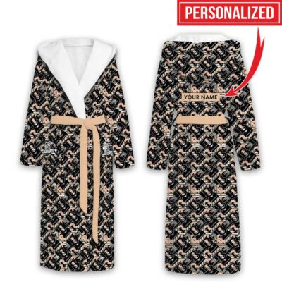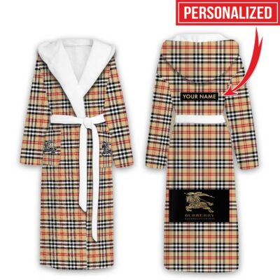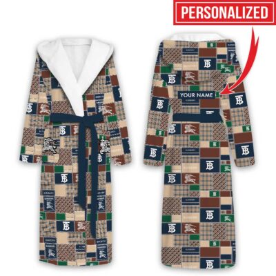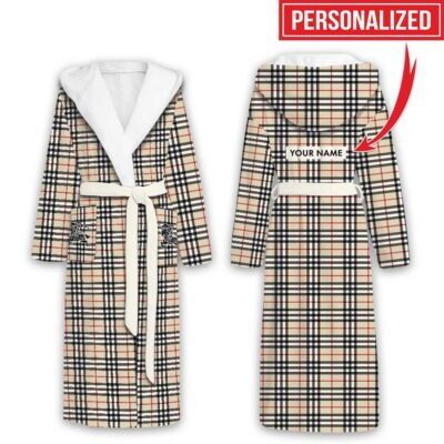 Burberry Black Pattern Luxury Unisex Flannel Hooded Bathrobe
