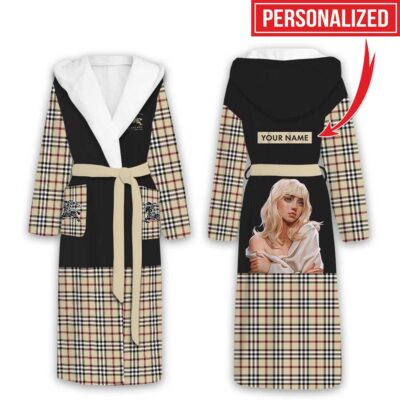 Burberry Established 1856 Billie Eilish Pattern Luxury Unisex Flannel Hooded Bathrobe